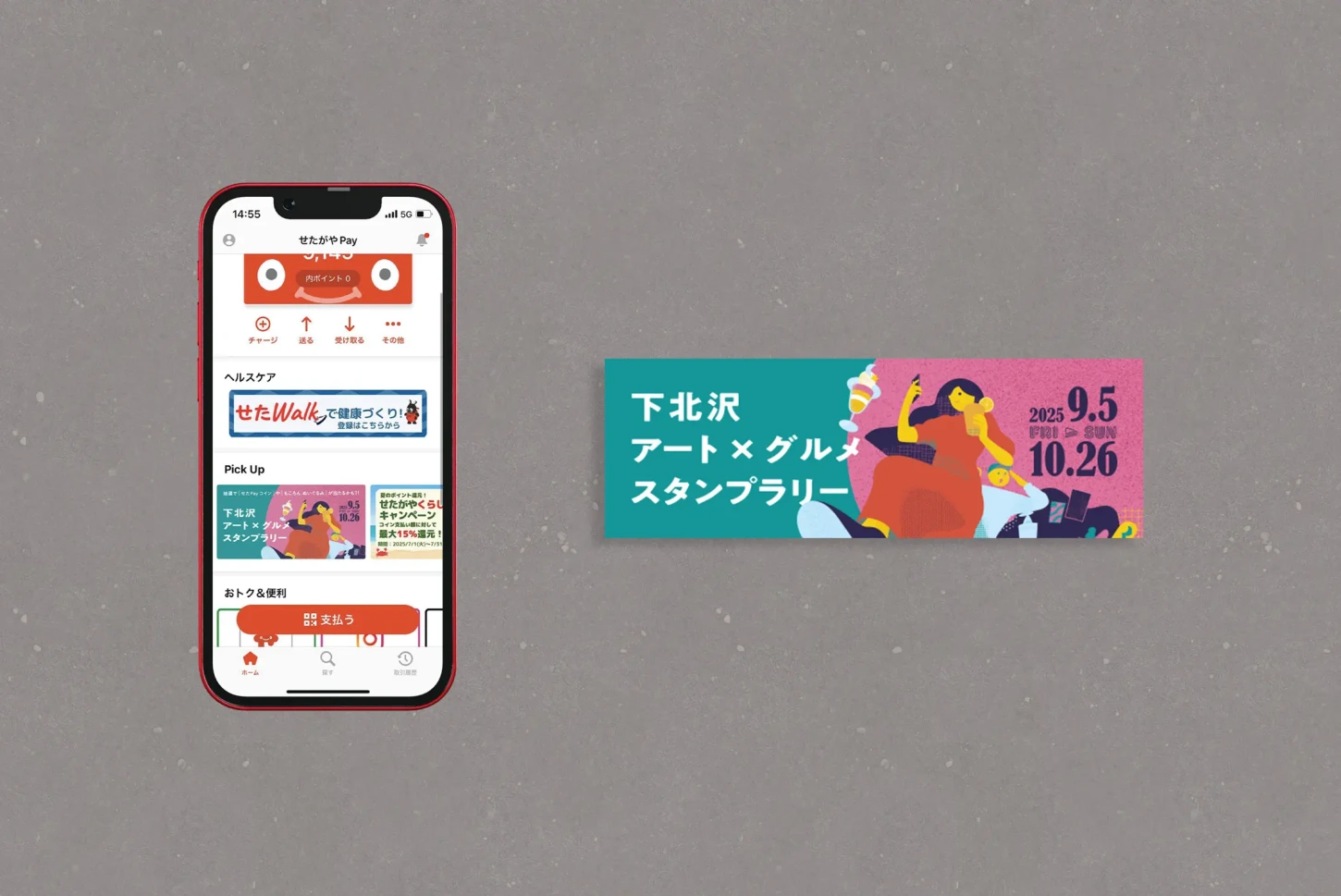 下北沢アート×グルメスタンプラリーは、下北沢エリアの回遊促進と消費喚起を目的に、アートイベント「ムーンアートナイト下北沢」にあわせて実施された、飲食店とアートギャラリーを巡るデジタルスタンプラリーです。参加者は、せたがやPayアプリを使って対象スポットを巡り、スタンプを集めることで抽選特典に応募できる仕組みで、2025年は下北沢駅周辺の65店舗が参加しました。世田谷区が、地域イベントと店舗回遊をつなげながら、来街者に街歩きを楽しんでもらうことを目指した企画です。